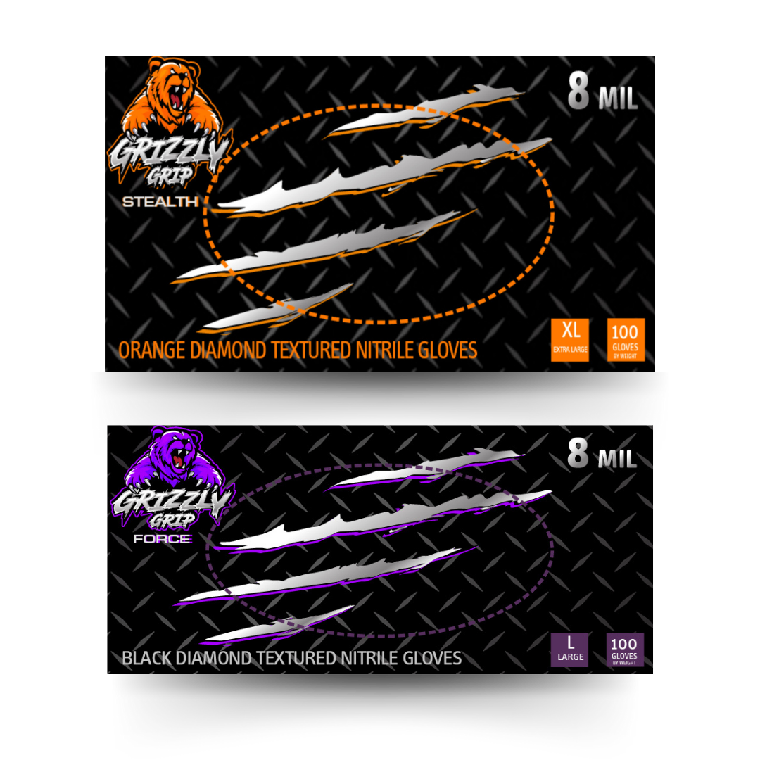 8 Mil Grizzly Grip Black Diamond Nitrile Gloves (100 Gloves/Box)